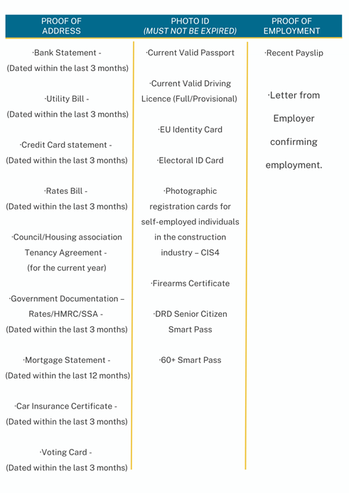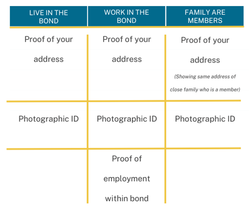 Next, we will need you to provide some documents, what you need to provide will depend on how you are eligible for membership. The table below shows what you need and when.