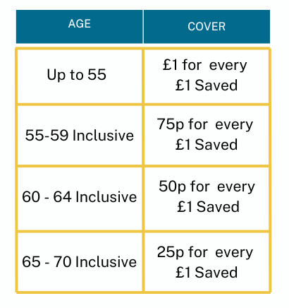 The amount of insurance benefit on savings which a member is entitled to is in direct proportion to their savings and their age up to a maximum payment of £6000*