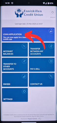Just select the loan application option from the memer area on our website or on the app as shown below.